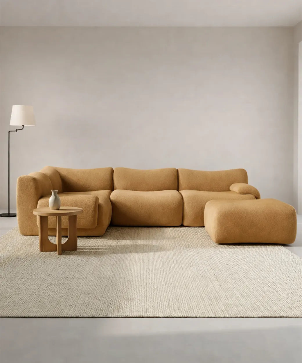 El diseño modular del Echeide amplía sus posibilidades decorativas. Está disponible en tres configuraciones principales: módulo lateral, módulo central y módulo esquinero, lo que facilita crear composiciones a medida según las necesidades del espacio. Puede integrarse con armonía en salones amplios, apartamentos urbanos, estudios creativos, salas de lectura o zonas destinadas a la relajación. Su color camel y su textura mullida combinan especialmente bien con tonalidades neutras, maderas naturales y decoraciones de inspiración mediterránea o nórdica.
