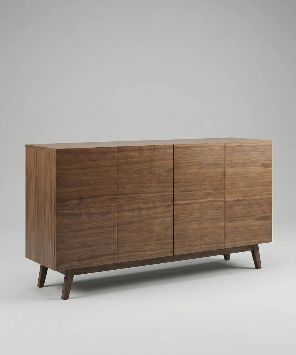 Su frontal se define por puertas completamente lisas, con una veta continua y natural que recorre la superficie aportando profundidad y elegancia sin artificios. Este lenguaje limpio convierte al aparador Isora en una pieza extremadamente versátil, capaz de integrarse con naturalidad en salones contemporáneos, espacios minimalistas o interiores de inspiración mid-century. La ausencia de relieves o tiradores visibles refuerza su carácter sereno y equilibrado.